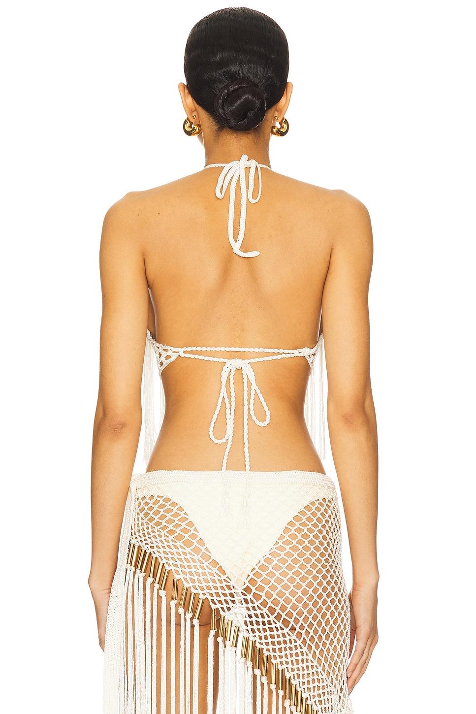 100% polyester. Hand wash recommended. Halterneck and back self-tie closures. Cropped styling. Hardware beading accent with fringe detail. Item not sold as a set. Made in Turkey. Revolve Style No. MYBR-WS45. Manufacturer Style No. H25CT73.