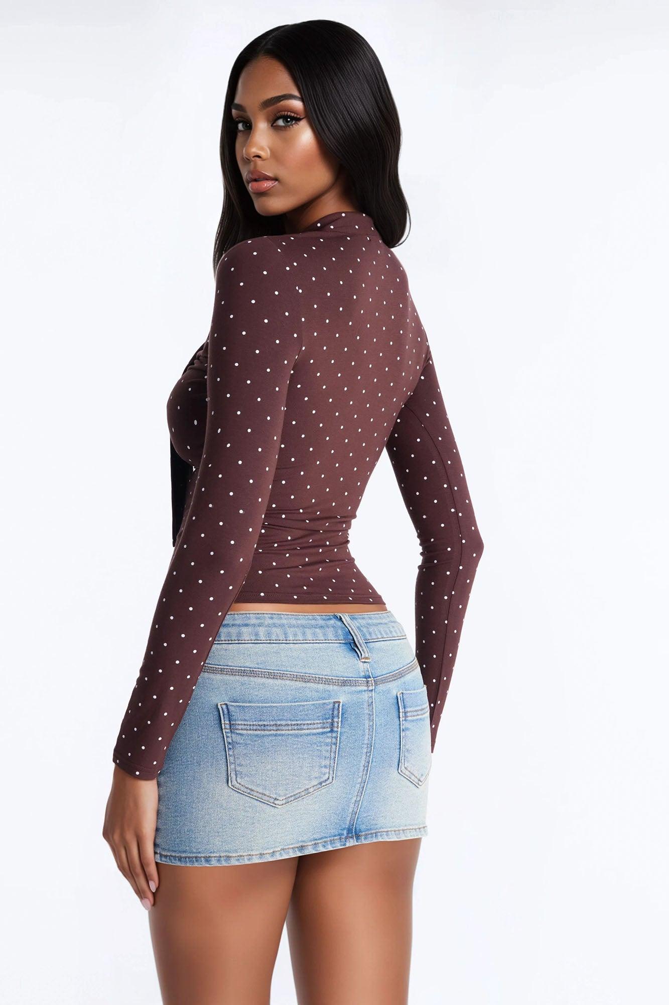 Aria Polka Dot Long Sleeve Top - Brown/combo Female