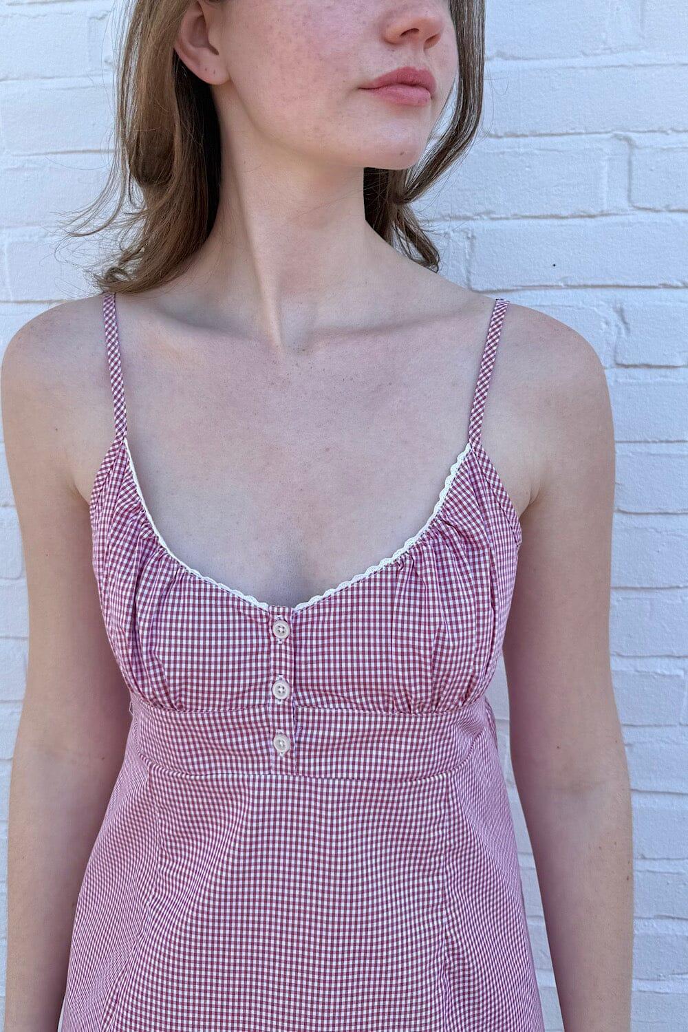Spaghetti strap dress with three button down detailing, lace trim, and a seam under the bust. Fabrics: 100% cottonMeasurement: 36" (91 cm) length, 14" (36 cm) bust Made In: China