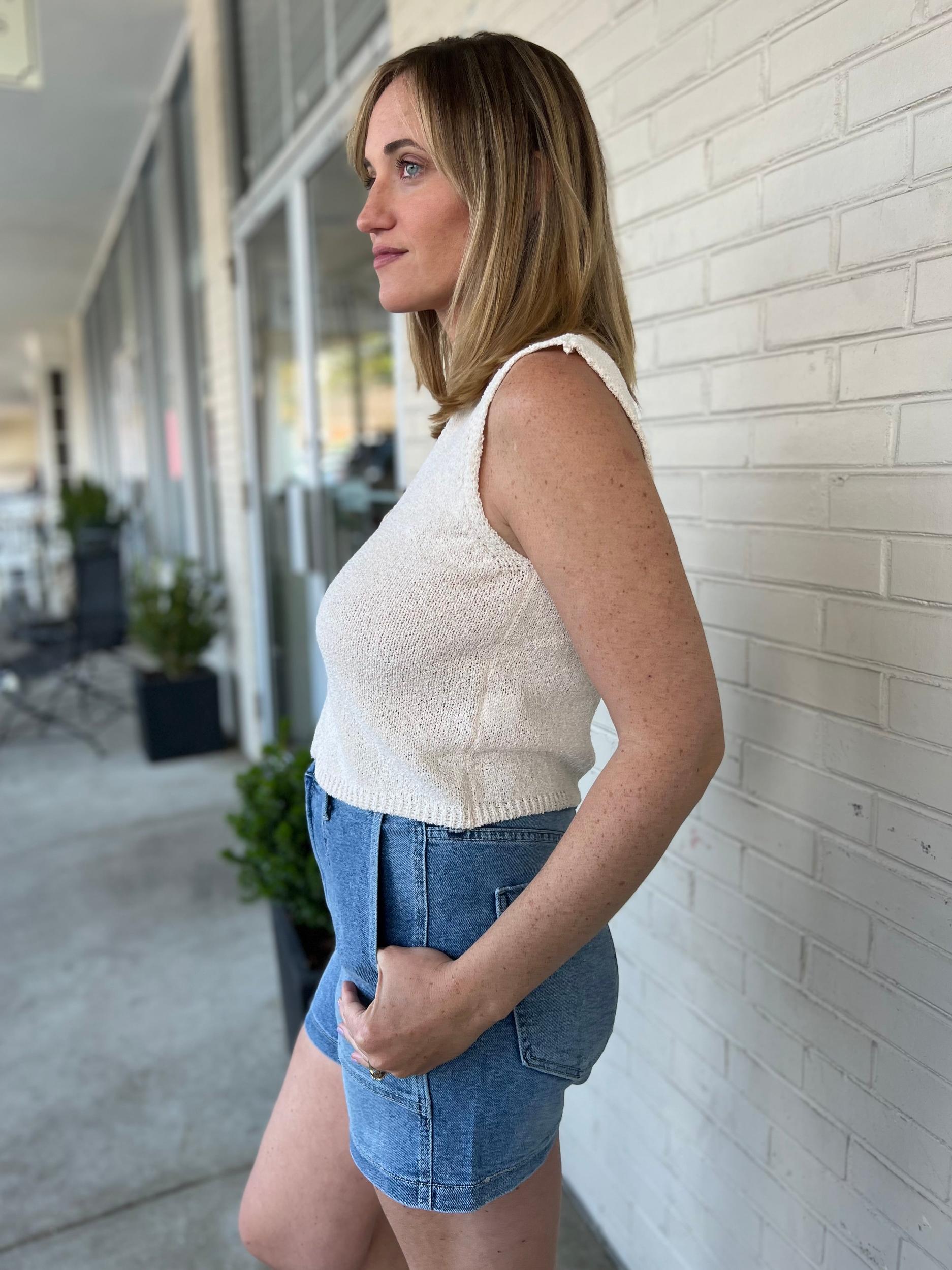 Are you ready to dominate the fashion scene with the Arianna Sleeveless Top? This beige beauty is incredibly cozy and boasts a delicate three-tier buckle, giving a rebellious twist to your outfit. And let's not forget the cute hook closure that'll surely catch some eyes! From day to night, this top will keep you both comfy and chic.