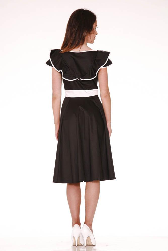 Refined, romantic, and ready to twirl—the Orchid Bloom Arianna Swing Dress is a true vintage showstopper. With its elegant black silhouette, bold white waistband, and darling ruffled neckline trimmed in contrast piping, this dress brings timeless charm with a playful twist. The flared skirt and soft stretch cotton blend make it as comfortable as it is captivating.Details:By Orchid Bloom97% Cotton, 3% Spandex – fabric provides stretchSide zipper closureLength: 41"ImportedMachine wash cold, tumble dry low or hang to air-dry