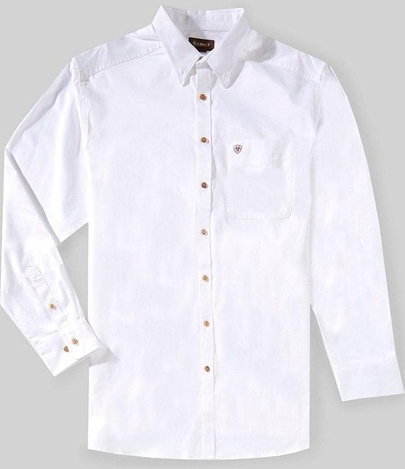 From Ariat Big & Tall, this shirt features: solid tone with logo at left chest button-down collar long sleeves button-front closure twill fabric cotton machine wash/tumble dry Imported.