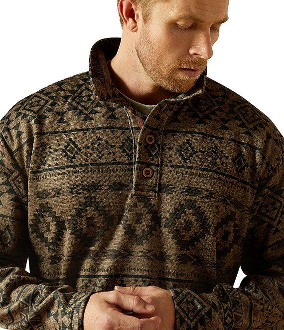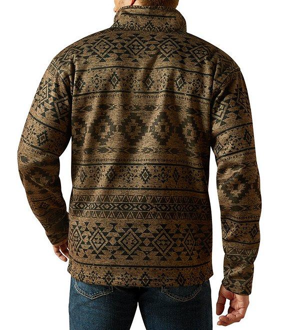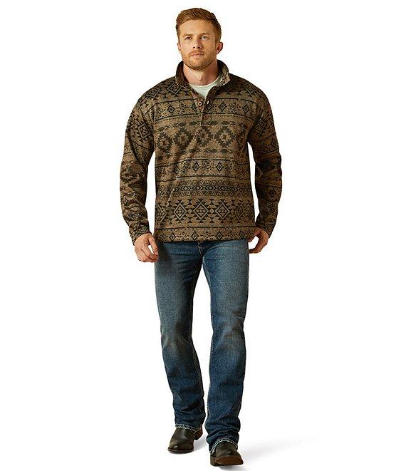 From Ariat, this sweater features: Subtle pattern Stand collar neckline 1/4 button front closure Faux-horn buttons Greater Arm Mobility™ lets you move freely Wears (and washes) like a technical fleece Polyester Machine wash/tumble dry Imported.