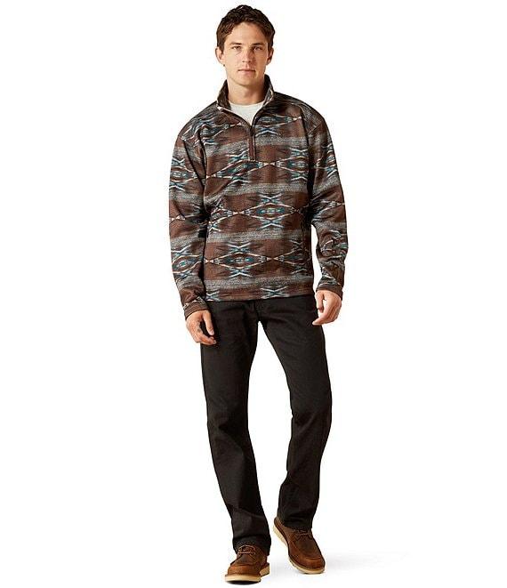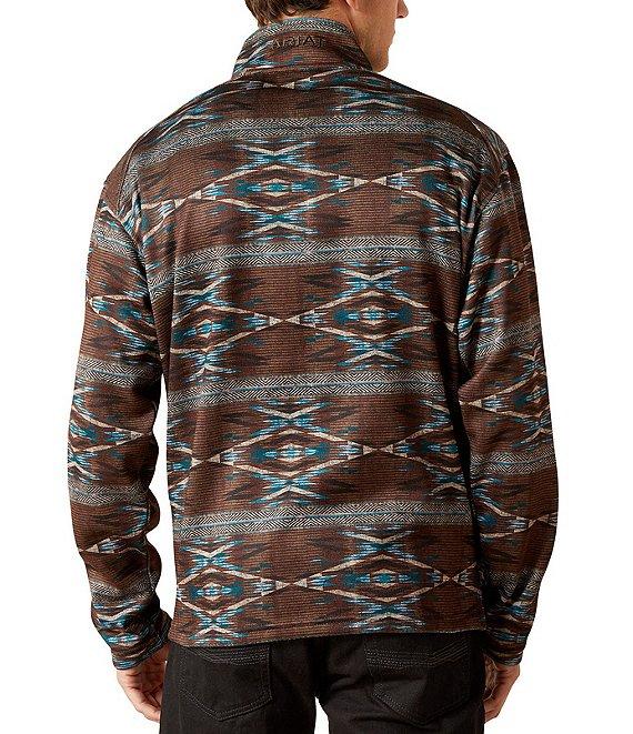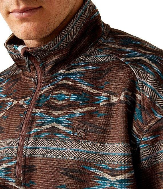 From Ariat, this sweater features: Allover print Mock collar Long sleeves Quarter-zip closure Ariat icon logo detail on the left side of chest Logo pull tabs Zippered hand pockets Pullover construction Polyester sweater fleece Machine wash/tumble dry Imported.