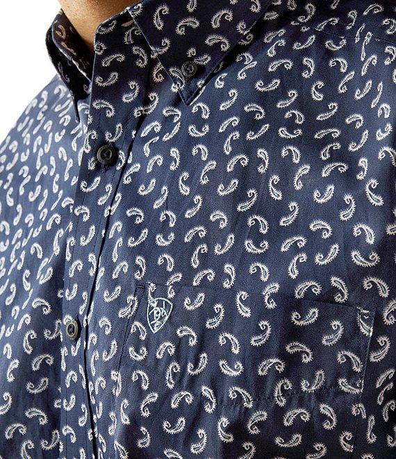 From Ariat, this shirt features: Button-down collar Short sleeves Button-front closure Ariat branding details Hidden pen slot in the chest pocket Generous fit, with extra length in the body and sleeves that keeps you covered while you're on the move Cotton Machine wash/tumble dry Imported.