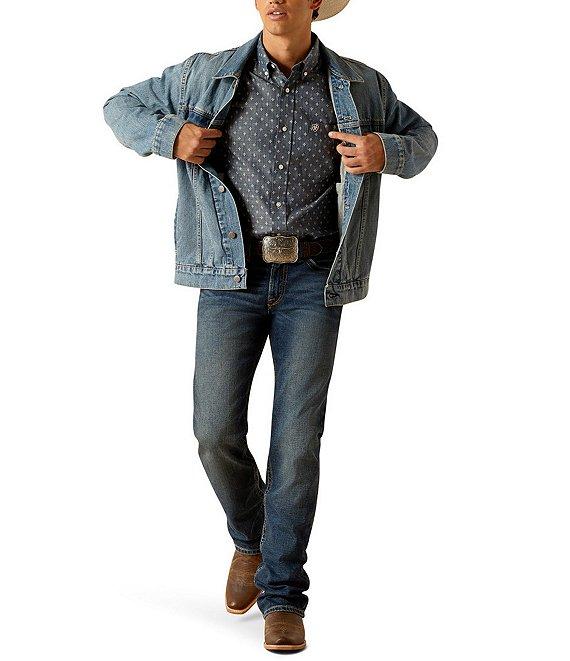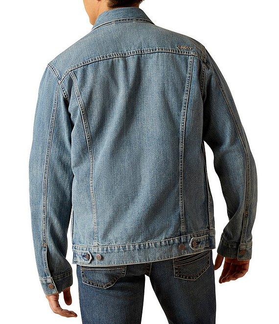 From Ariat, this jacket features: Trucker styling Light-wash denim makes it timeless Versatile snap front pockets and cuffs Front button closure Snap closure cuffs Double front pockets with snap closure 12 oz ring-spun denim 100% cotton Machine wash/line dry Imported.