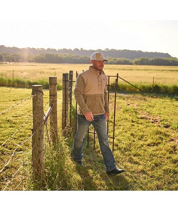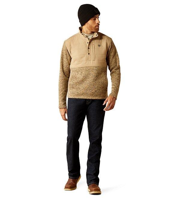 From Ariat, this snap pullover features: Slim fit Mock collar Long sleeves Front chest pocket AriatTEK for superior performance in any weather Greater Arm Mobility for freedom of movement Sweater fleece blocked with a woven fabric Chest yoke Snap closures Pullover construction Polyester Machine wash/tumble dry Imported