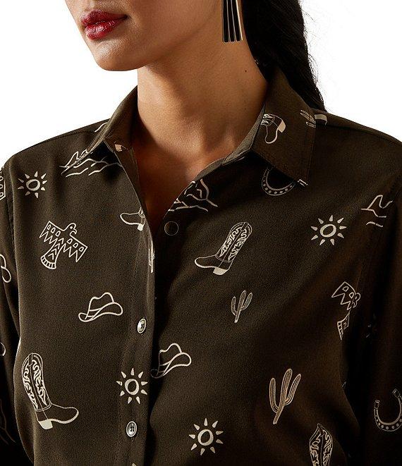 Ariat Homestyle Icon Print Point Collar Long Sleeve Button Front Shirt