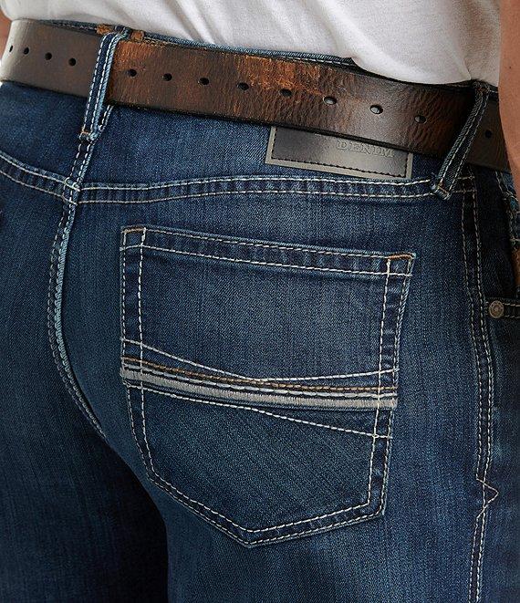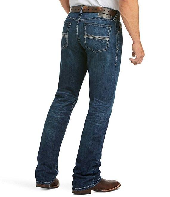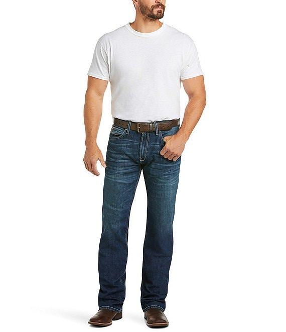 From Ariat, these jeans feature: Relaxed fit Bootcut legs Extra relaxed fit through the waist, hips and thighs Extra deep front pockets Stitched back pockets Low rise No-rub comfort inseams Zip/button-front closure Belt loops Cotton/polyester/spandex denim Machine wash/tumble dry Imported.