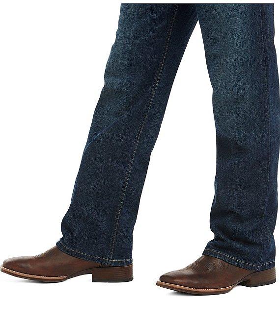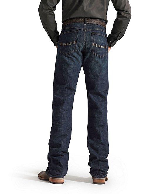 From Ariat, these jeans feature: Relaxed through the waist, hip and thigh 13.25 oz ring-spun denim Sits below the waist Loop Lock® reinforced rear belt loop anchored belt loops Heavy-duty zippers and hardware Extra deep front pockets Straight leg Cotton Machine wash cold Imported.