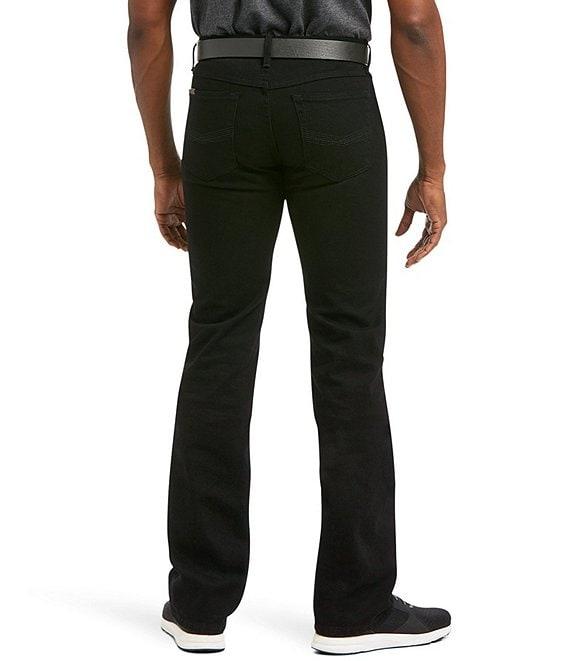 From Ariat, these jeans feature: 12 oz ring-spun stretch denim Loop Lock® reinforced rear belt loop No-rub comfort inseam Anchored belt loops Heavy-duty zippers and hardware Extra deep front pockets Slim through seat and thigh Sits below the waist Straight leg Cotton/spandex Machine wash cold Imported.