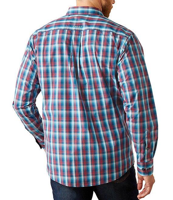 From Ariat, this shirt features:Allover plaid designButton-down collar Taped placket and back neck seamLong sleevesAdjustable cuffs with extended button detail Button-front closureLeft side chest pocketHidden pen slot in left side pocketMoisture Movement Technology Sun Protection Fabric Breathable mesh yokeAriat branding detailsPolyester/cottonMachine wash/tumble dryImported.