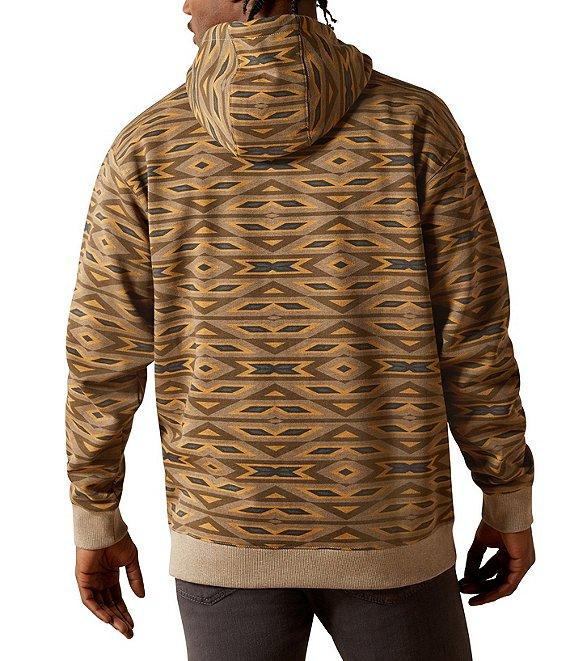From Ariat, this hoodie features: Allover print Attached hood with drawstring Crew neck Long sleeves Front kangaroo pocket Solid cuffs and hem Pullover construction Cotton/polyester fleece that's ultra soft and supremely comfortable Machine wash/tumble dry Imported.