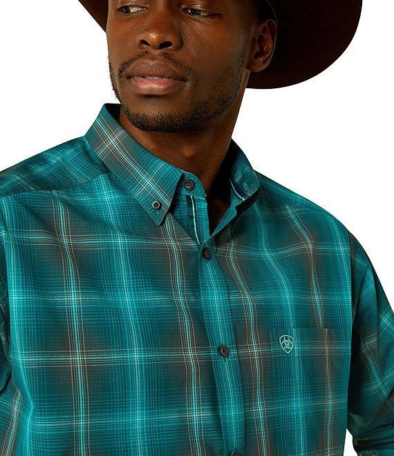 From Ariat®, this shirt features: Button-down collar Long sleeves Button front closure Moisture Movement Technology™ helps keep you drySun Protection Fabric™ gives you UV coverage Breathable mesh yokeAriat® Pro Series™ will give you the freedom to move without ever losing that crisp, clean look Breathable, durable, and packed with technical features, they can handle anything you put them through Cotton/recycled polyester Machine wash/tumble dry Imported.