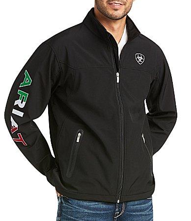 From Ariat, this jacket features:Ariat brandingTeam color blockingStand collarFull-zip closureLong sleevesZippered hand pocketsAriatTEK Cold Series technology keeps body core warmWind and water resistant garments employ a thin technological coating to block wind and protect from light rainSoftshell with microfleece backingPolyesterMachine wash; line dryImported.