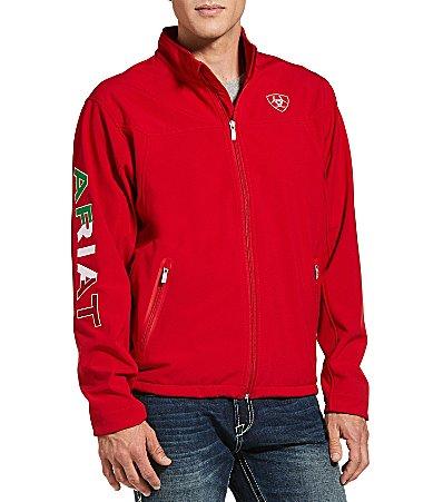 Our smart, sleek Team Softshell Jacket is for the athlete who demands the best. It's warm to the core and cut to perfection so you'll always ride in supreme comfort. Specially styled to celebrate the green, white, and red with the Mexican flag. New Team Softshell MEXICO Jacket Men's New Team Softshell MEXICO Jacket in Red, Size: Small by Ariat