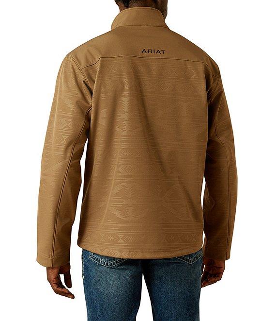 From Ariat, this jacket features: Long sleeves Zip front closure Greater arm mobility lets you move freely Embroidery detail Adjustable waist cord and cuffs Zippered hand and chest pockets Keeps you warm without creating bulk Softshell stretch nylon resists wind and water, while a microfleece backing helps retain heat Recycled polyester/elastane Machine wash/tumble dry Imported.