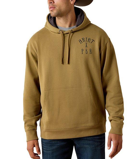 From Ariat, this hoodie features: Soft, brushed fleece fabric Adjustable lined hood Long sleeves "Ariat x PBR" logo screen printed graphic on the front Cowboy riding a bull character graphic on the back Pullover construction Perfect for everyday wear with a familiar, easy fit Cotton/polyester soft brushed fleece Machine wash/tumble dry Imported.