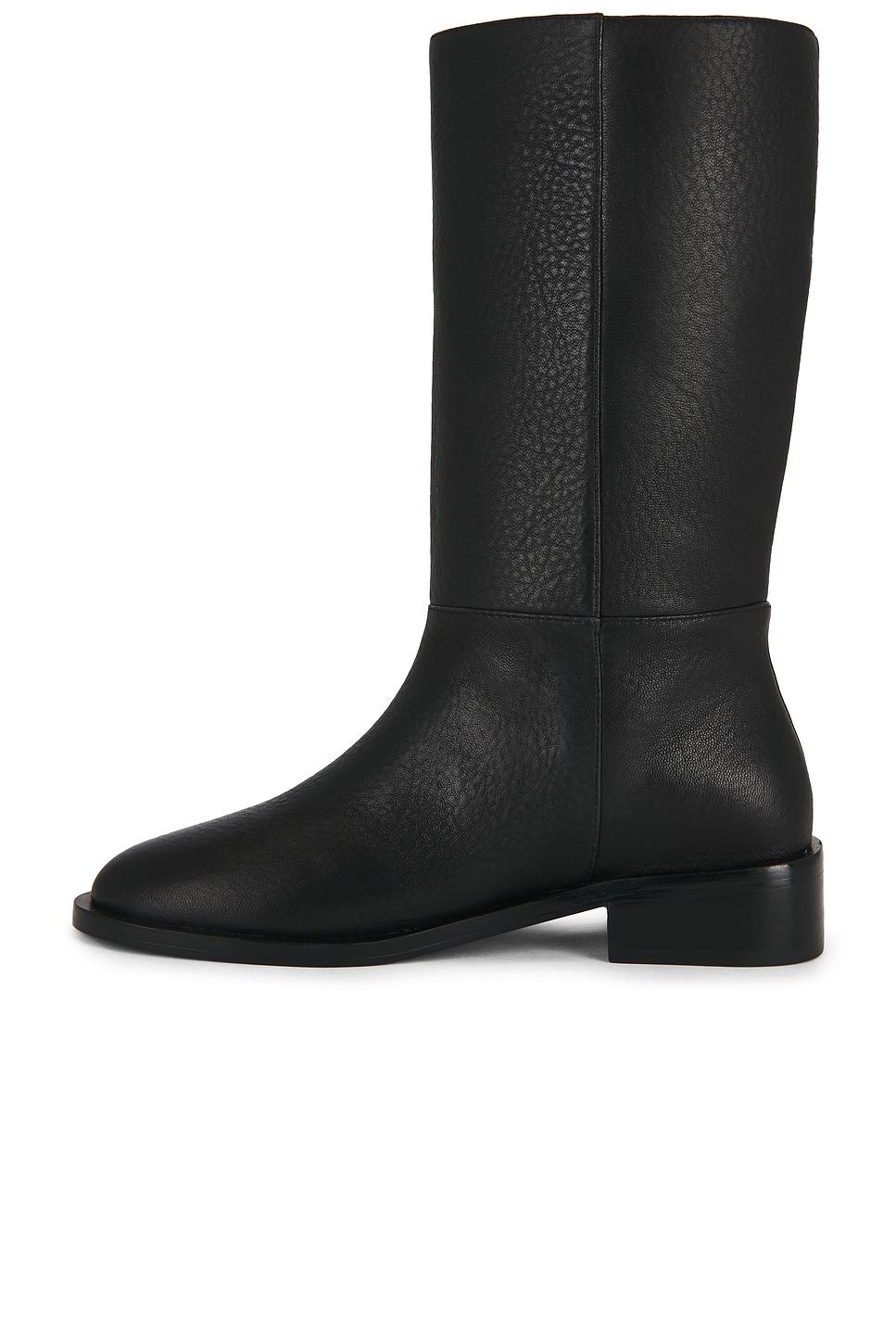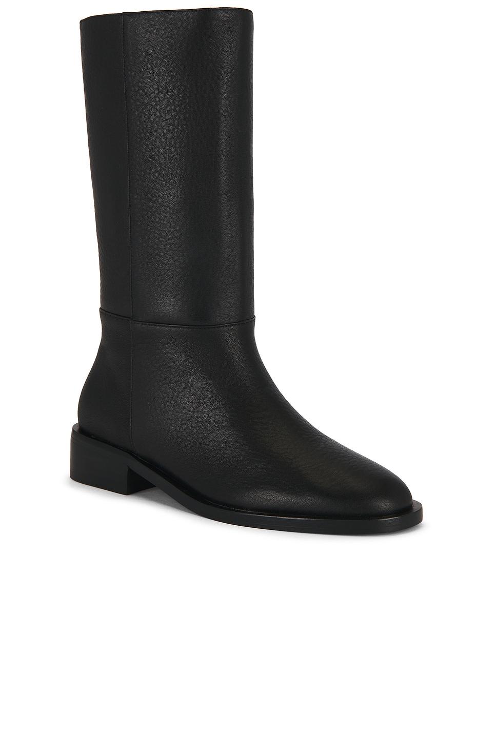 Leather upper with manmade sole. Made in China. Pull-on styling. Leather footbed and lining. Almond toe with wooden block heel. Approx 279.4mm/ 11 inch shaftApprox 31.75mm/ 1.25 inch heel. Revolve Style No. RAYE-WZ2980. Manufacturer Style No. RYSH10125 R25.