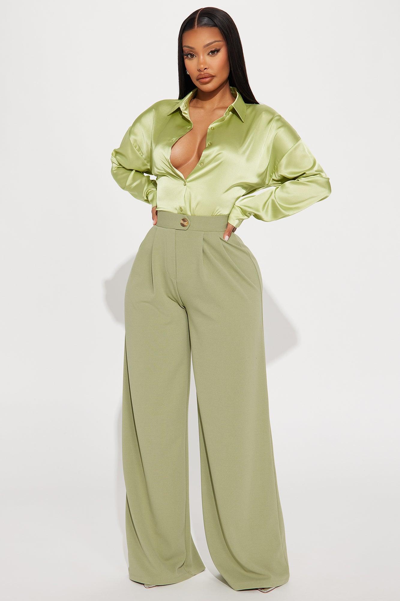 Available In Black, Green And Ivory. Satin Shirt Long Sleeve Button Down Collar Non Stretch 96% Polyester 4% Spandex Imported