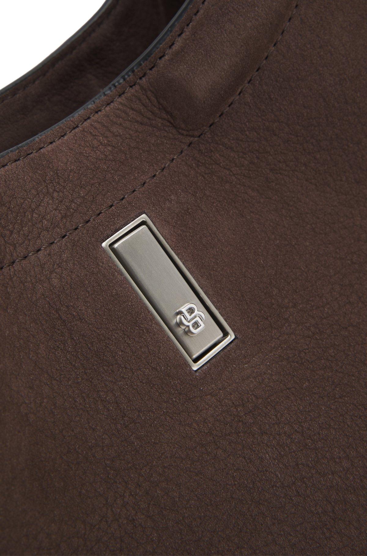 Treat your daily options to the effortless silhouette and butter-soft nubuck of this BOSS Womenswear hobo bag. Double B monogram on brushed hardware. Measurements: 34 x 35.5 18cm