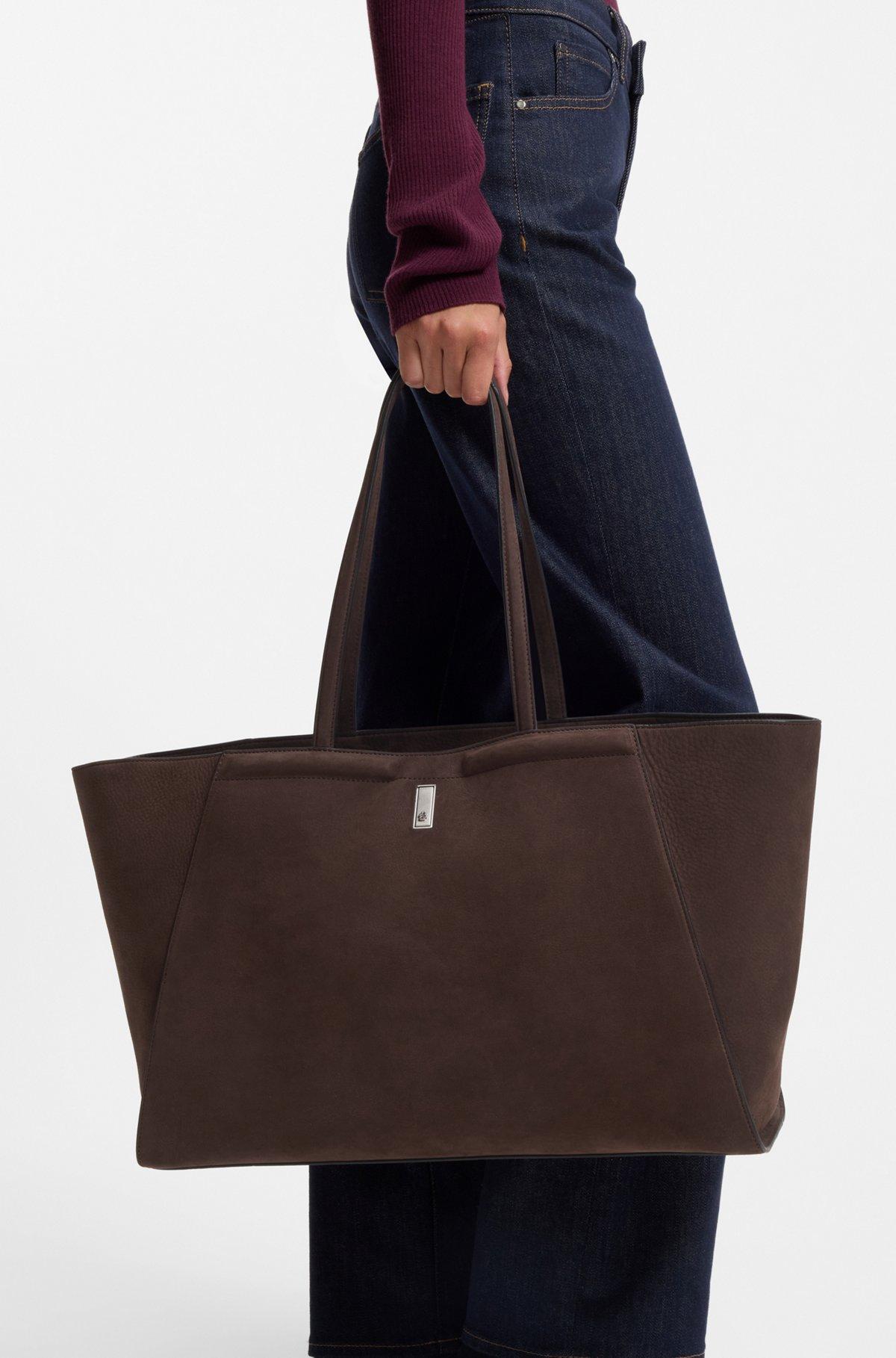 Refresh your everyday accessories with the butter-soft nubuck of this BOSS Womenswear shopper bag. Double B monogram on brushed hardware. Fully lined Measurements: 48 x 28.5 x 24cm
