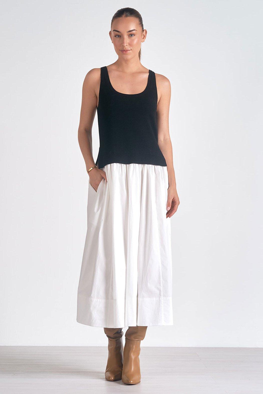Stunning Black and White Dress by Elan Dress up or down looks great day or night A romantic style, the Aries maxi dress skirt is a classic look. Woven and tiered, pair with basic tops and sandals for a bohemian feel. Designed for a free-flowing and airy fit. Runs true to size, Height: 5'10 Bust: 34" Waist: 24" Hips: 36
