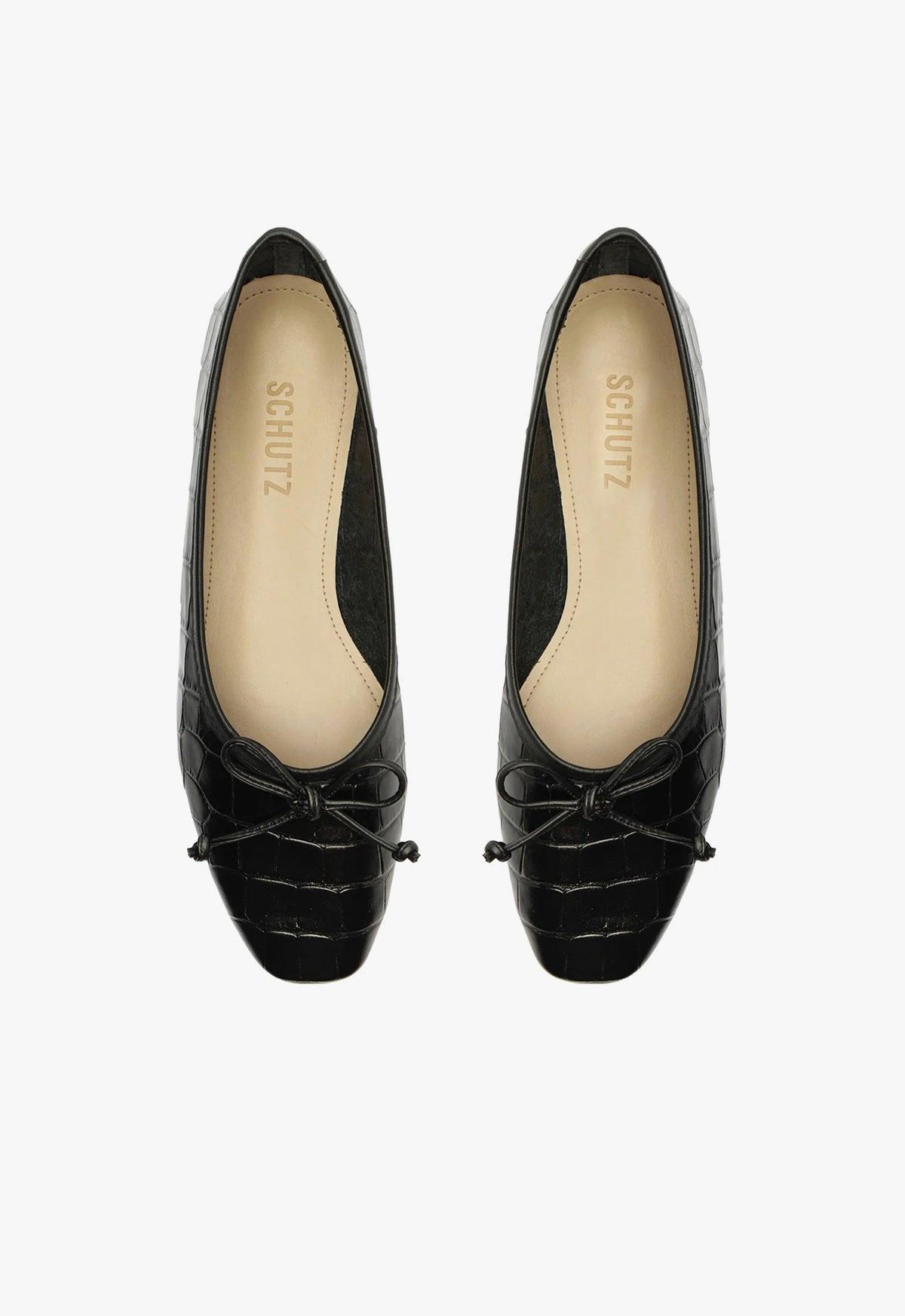 Arissa Black Leather Ballet Flat Female