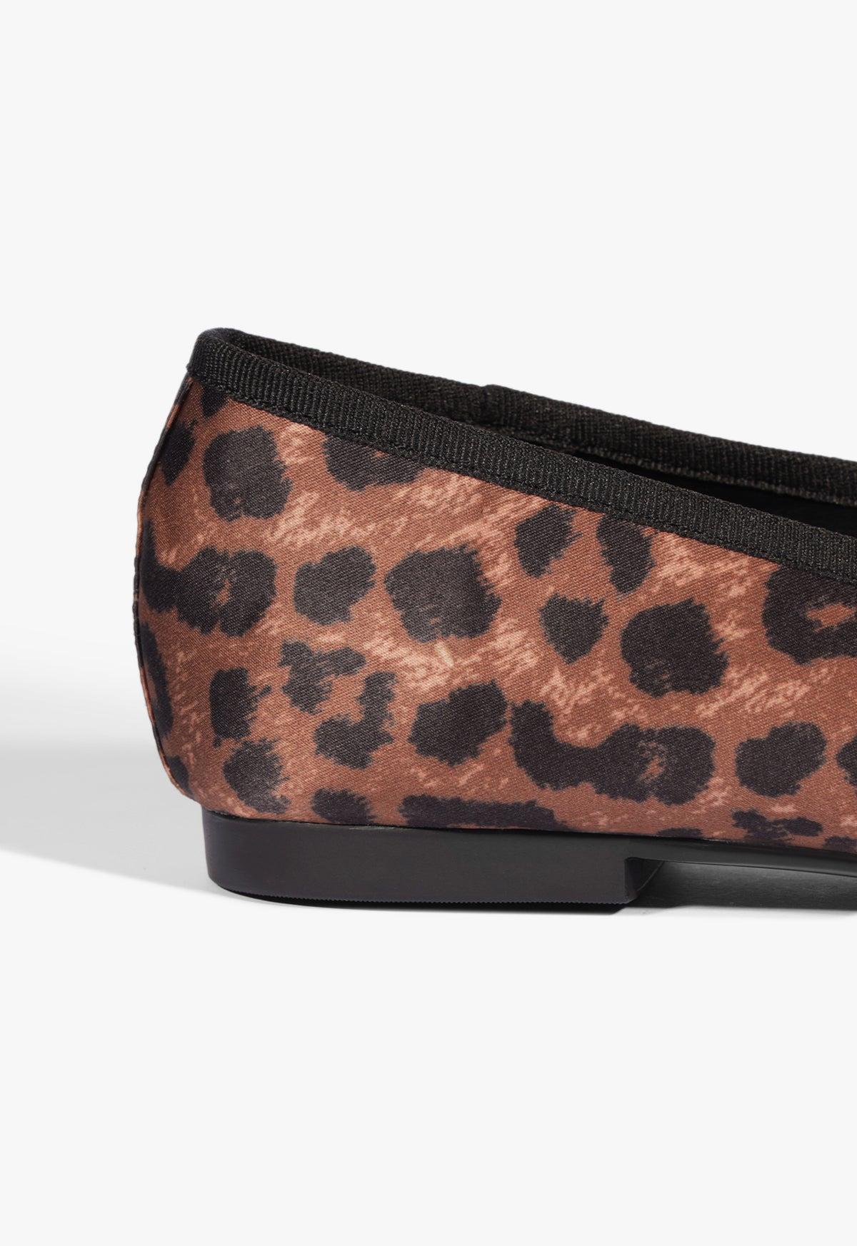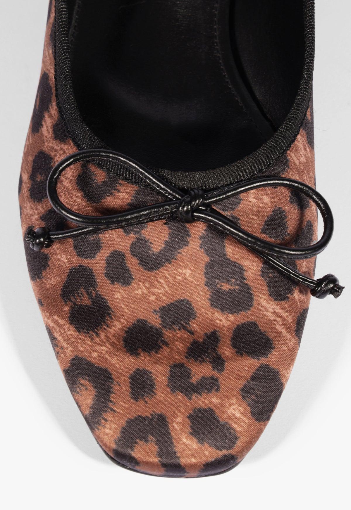 This Arissa flat features a sleek leopard-print pattern, perfect for adding style to casual or dressier outfits. With a low-profile, easy fit, and an added bow detail on the front, it brings a touch of playfulness to your look without compromising your feet.Material: Fabric Upper | Synthetic OutsoleHeel Type: FlatHeel Style: FlatToe Style: Square ToeClosure Type: Slip OnCounter Type: ClosedHeel Height: 0,4 In | 10 mmSKU: S2071002390008