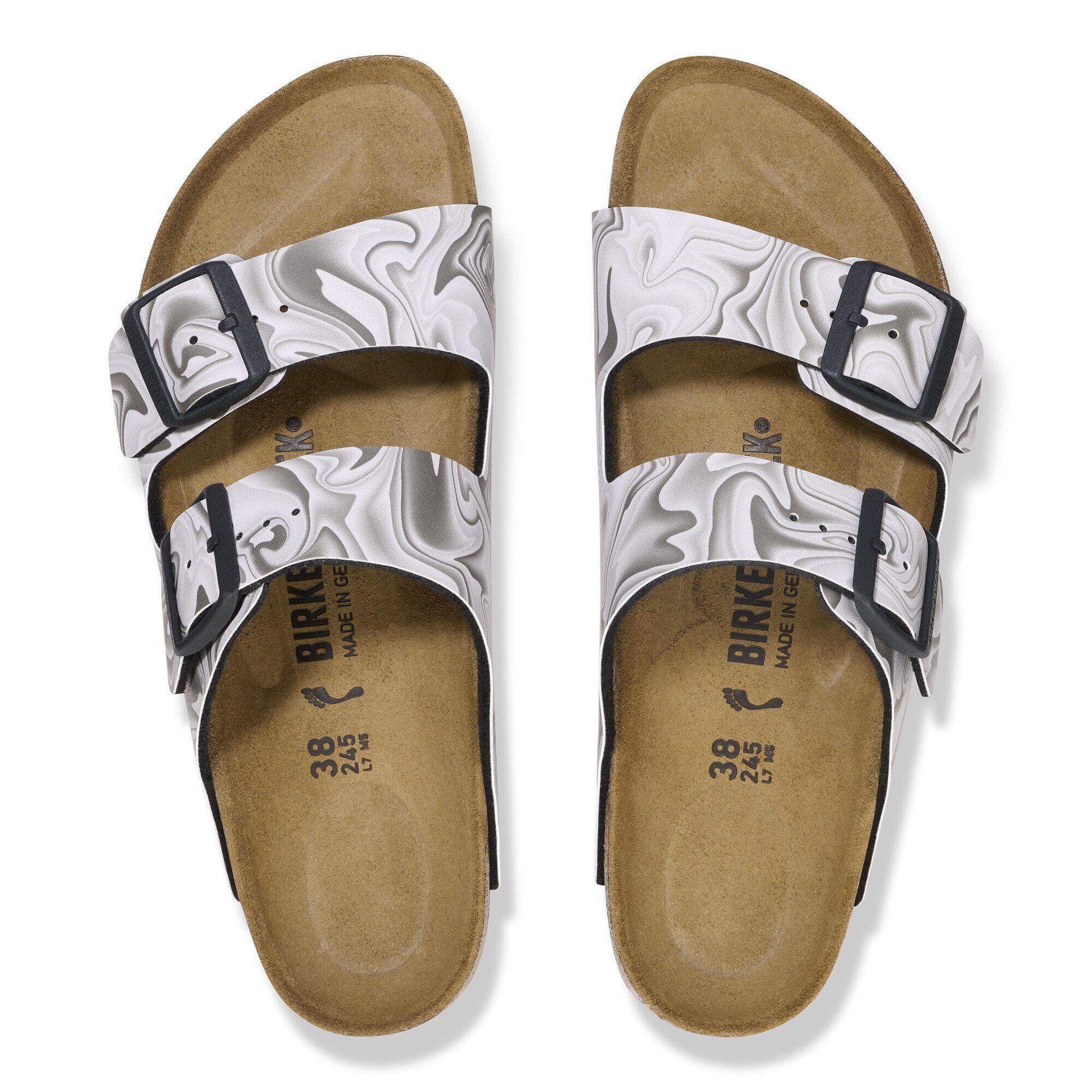 An icon of timeless design and legendary comfort, the Arizona sandal has been defining style since 1973. A marbled print swirls color across the two-strap classic, putting a creative spin on your all-time favorite. The style is grounded in the original comfort of our contoured footbed, designed to shape to you for the ultimate support.