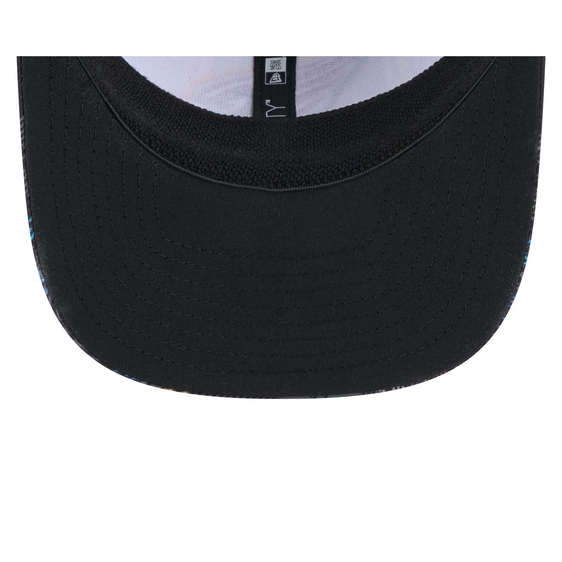 The Arizona Cardinals 2024 Crucial Catch 9SEVENTY Trucker features an embroidered Cardinals logo at the front panels with a Crucial Catch Intercept Cancer patch at the right-wear side. Additional details include a mesh back with an NFL Shield above a snapback closure at the rear and a gray undervisor.