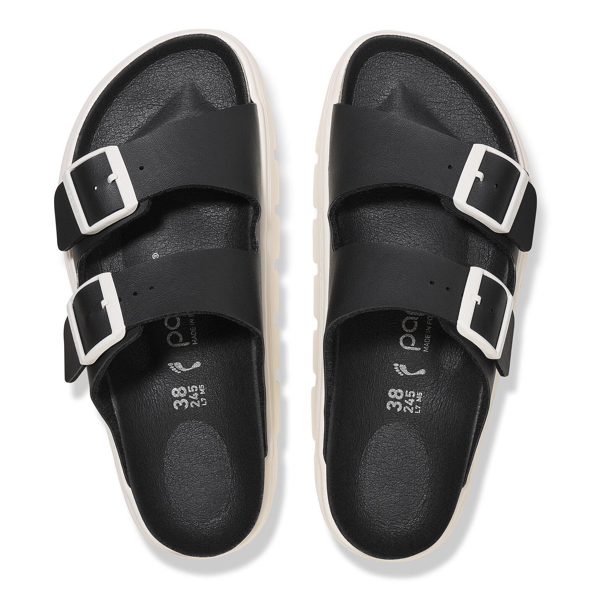 A platform sole takes the Arizona's classic design to new heights—and your style along with it. Its smooth Birko-Flor® upper creates an instant color contrast against its stacked sole. Featuring a contoured footbed that gives you the support of a BIRKENSTOCK sandal.