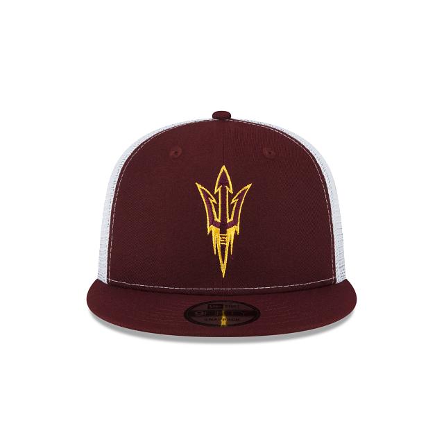 The Arizona State Sun Devils Mesh 9FIFTY Snapback features an embroidered Sun Devils logo at the front panels with an adjustable snapback closure at the rear and a gray undervisor.