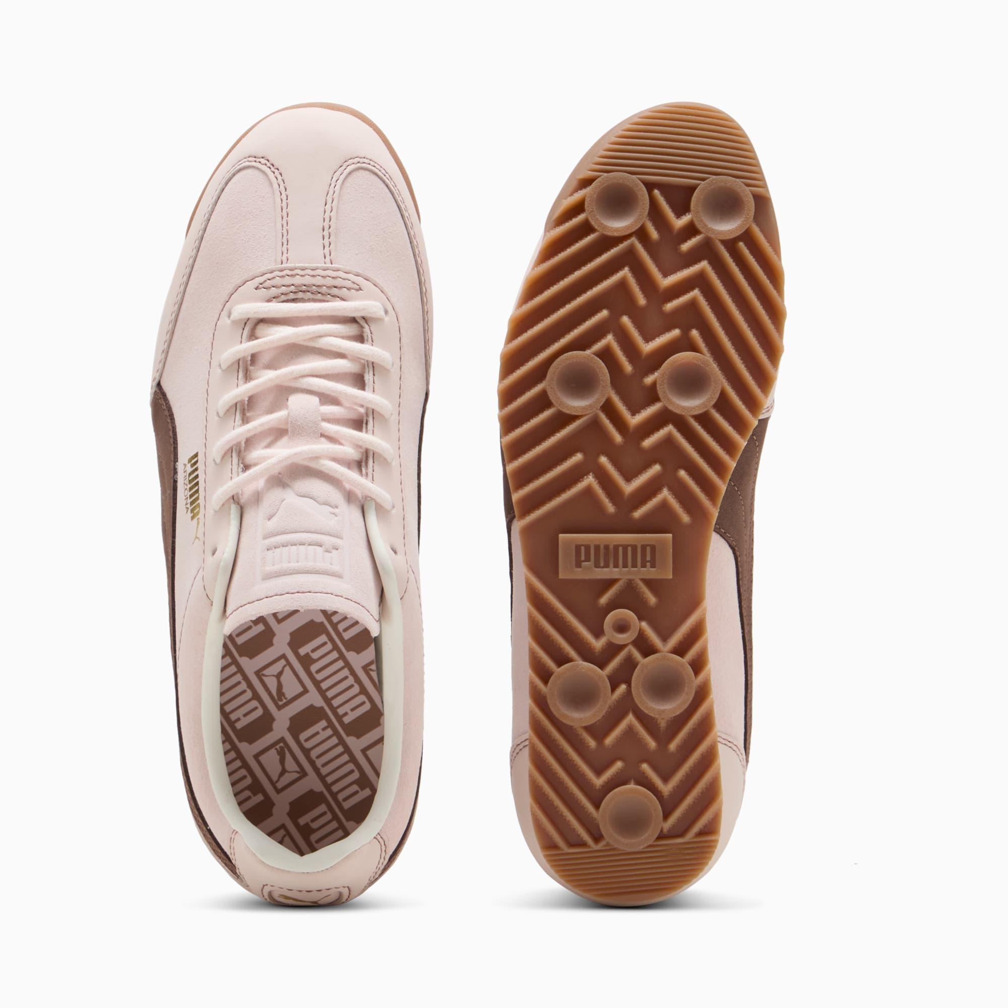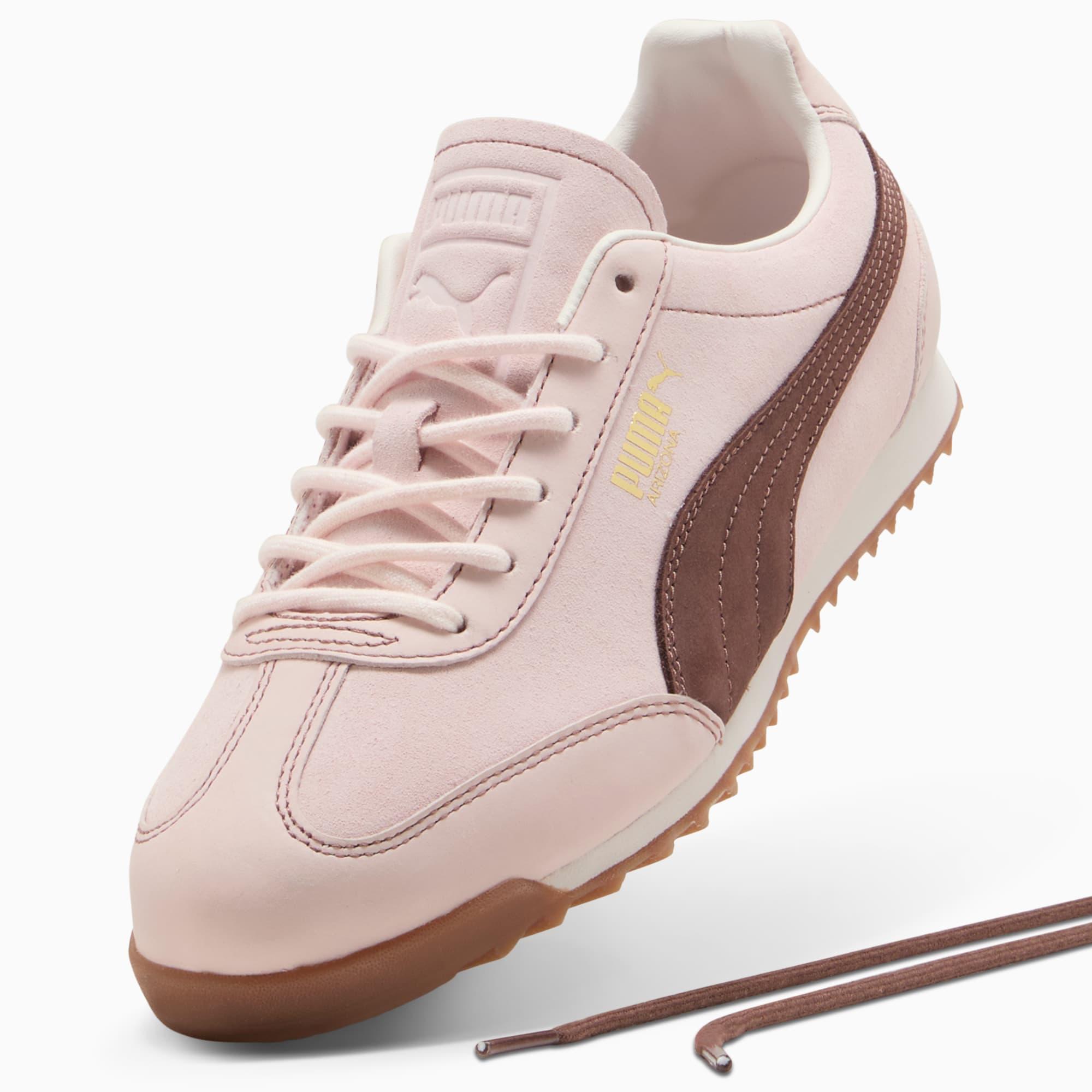 descriptionPulled straight from our PUMA archive, the Arizona was created in the 1970s as a low-profile training shoe. Today, you can rediscover the classic for yourself. Featuring a lightweight, cushioned EVA midsole and a 70s-inspired toe box design, it delivers everyday comfort and timeless appeal all in one.Style: 403783_01Color: Jasmine Flower-Flat Bronze-PUMA GolddetailsWidth: RegularToe Type: RoundedFastener: Laces, with extra set includedMain material of upper: SuedeHeel type: FlatOutsole: Rubbermaterials & careMaterial informationMidsole: 100% SyntheticSockliner: 100% TextileOutsole: 100% RubberUpper: 68.63% Coat / Fur, 29.63% Leather - cow, 1.74% TextileLining: 100% Textile