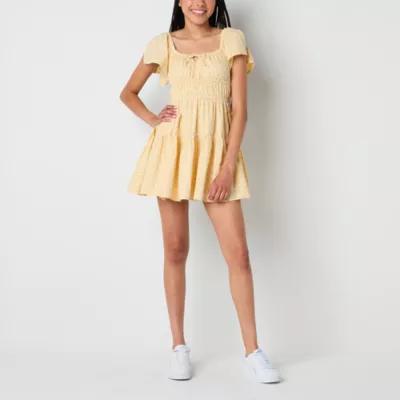 Arizona Womens Juniors Short Sleeve Floral Fit + Flare Dress