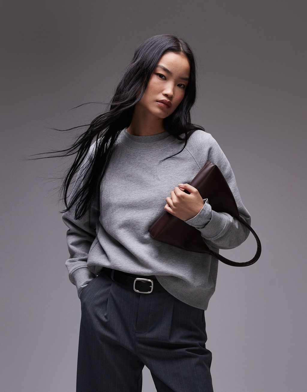 ARKET soft crew neck terry sweatshirt in gray melange