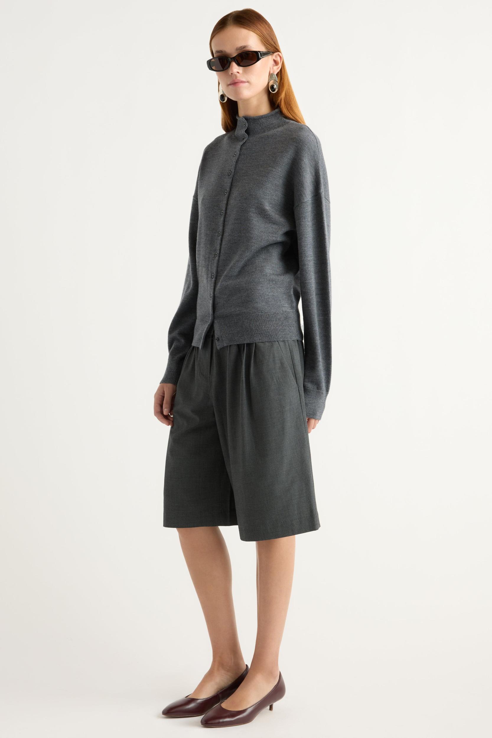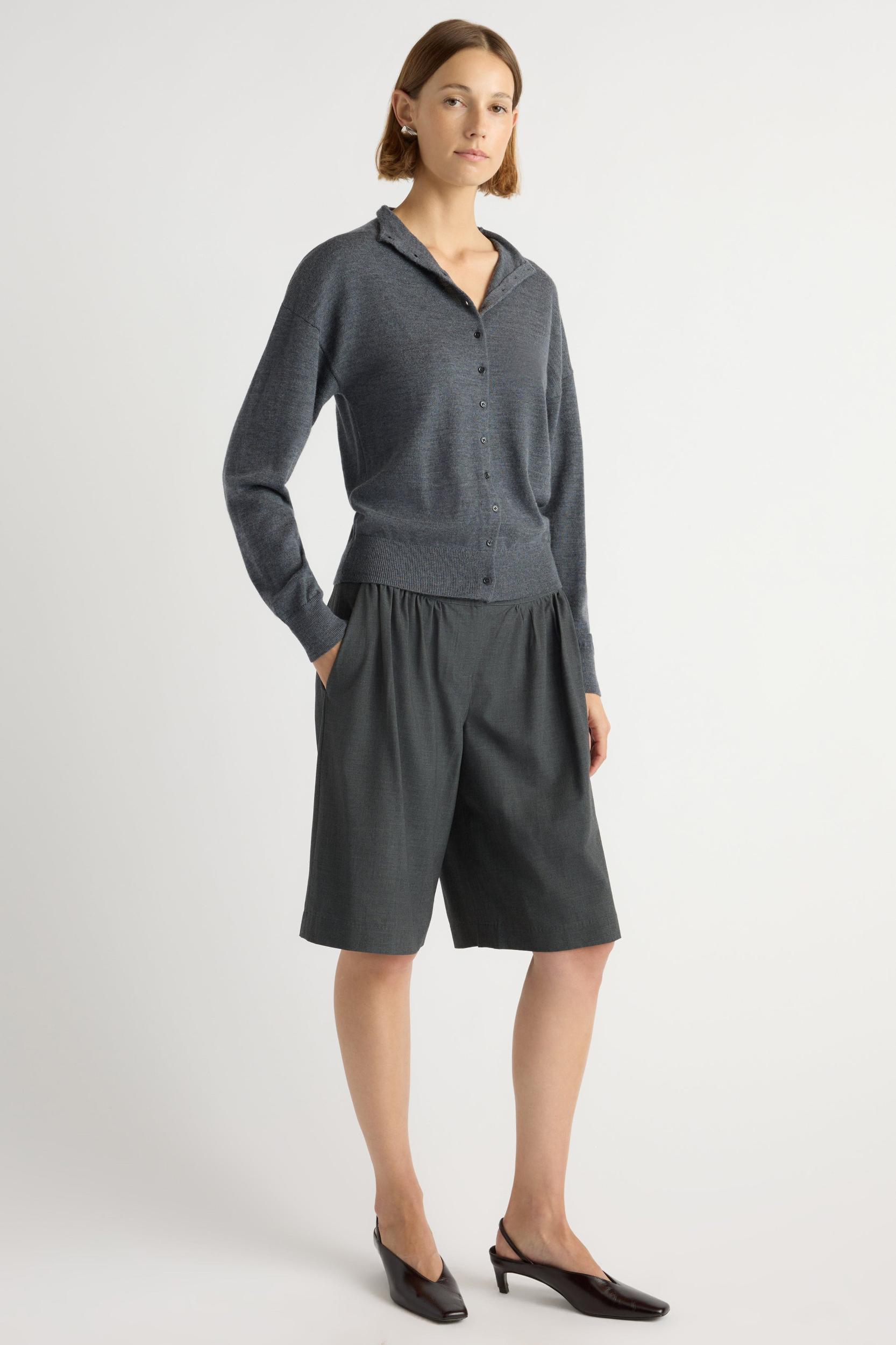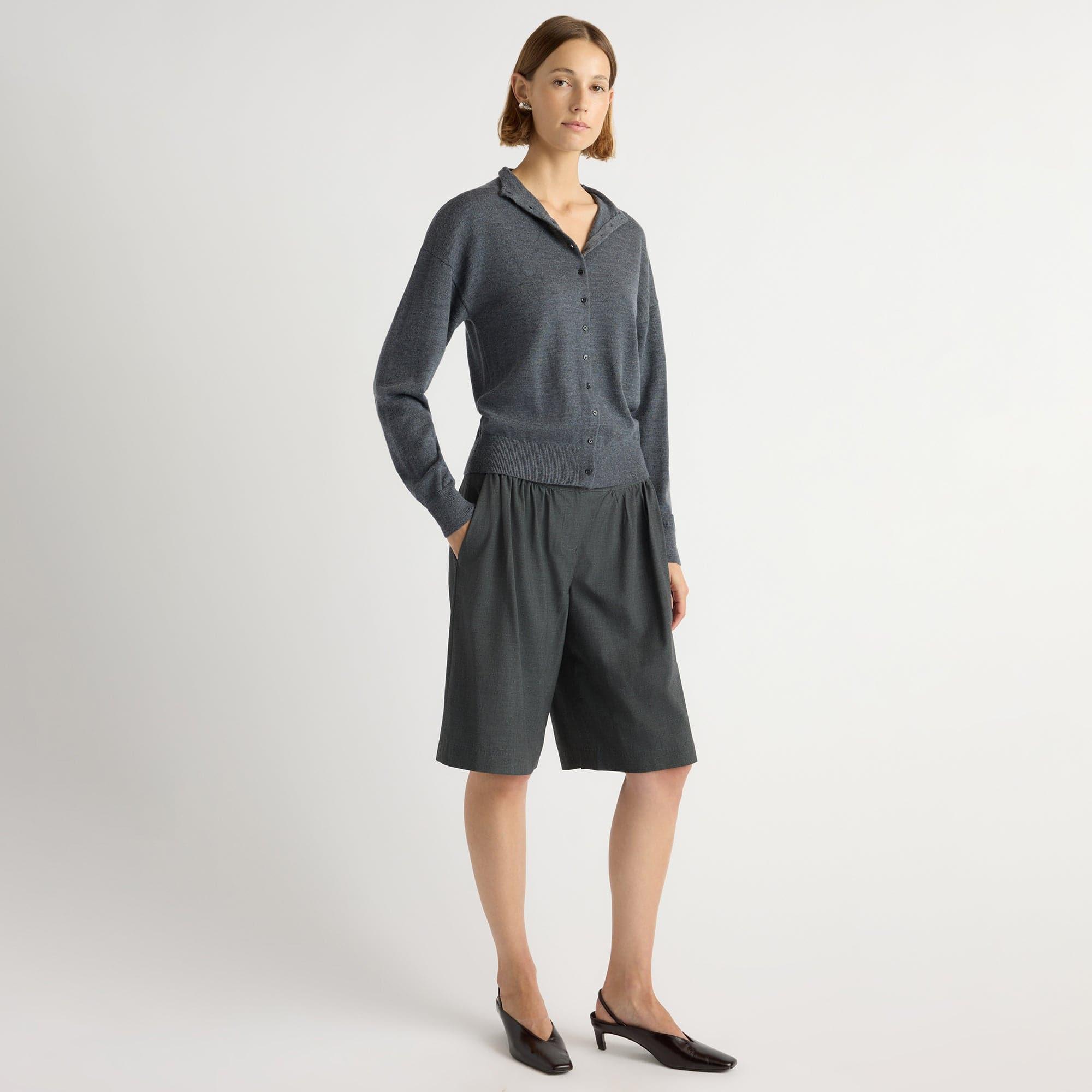Our design-forward update to the classic Bermuda short. Arlen features classic suiting details and is cut from mid-weight breathable fabric with gathered details and an asymmetric button closure at the waistband.