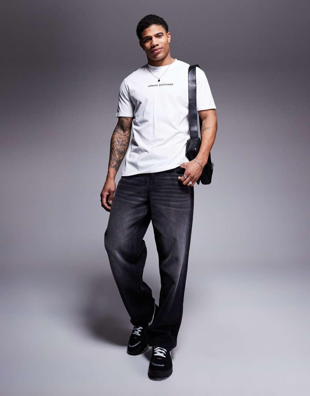 Armani Exchange chest logo t-shirt in off white