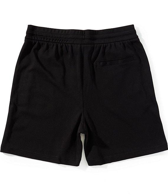 From Armani Exchange, these shorts feature: Regular fit Flat front Drawstring elastic closure 2 side pockets 9" inseam Cotton fleece Machine wash/line dry Imported.
