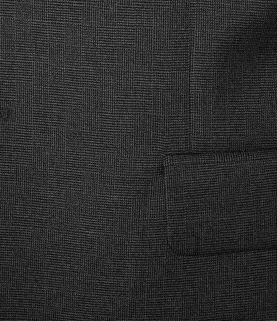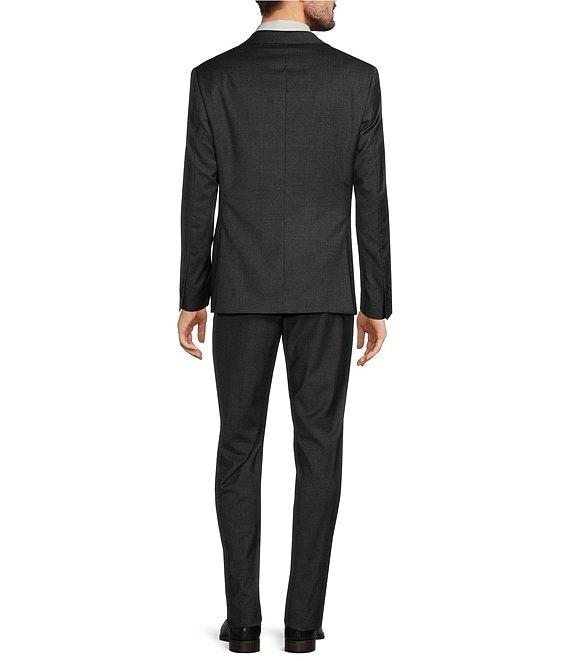 From Armani Exchange, this 2-piece suit features:Jacket:Woven patternModern fitPeak lapelNatural shoulderLong sleeves2-button closureSide ventsFlap pocketsPants:MatchingFlat frontButton closure with zip fly2 front hand pockets2 back buttoned pocketsUnhemmed stylingCare:Wool/elastaneDry cleanImported*Dillard's offers free alterations at our retail store locations on full price tailored garments.Suits have what is called a "drop", which is the difference between the size of the jacket and the size of the pants. Classic-fit suits typically have a 6" drop, meaning that a size 38R jacket is paired with size 32 pants. Trim-fit suits typically have a 7" drop; extra trim-fit suits usually have an 8" drop.