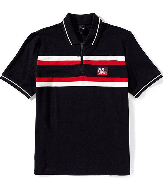 Armani Exchange Pique Chest Tape Quarter-Zip Short Sleeve Polo Shirt