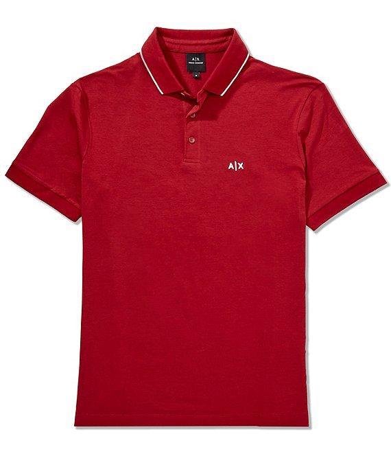 From Armani Exchange, this polo shirt features: Ribbed polo collar with tipping Short sleeves with ribbed armbands 3-button placket Logo on the left side of chest Pullover construction Cotton Machine wash/tumble dry Imported.