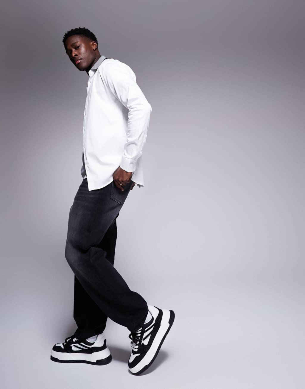 Armani Exchange shirt with contrast stripe collar in white