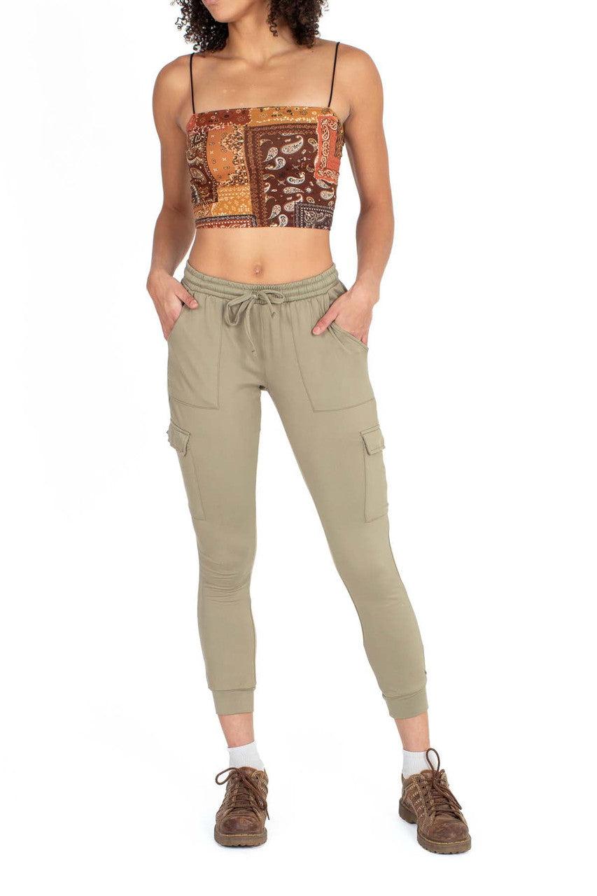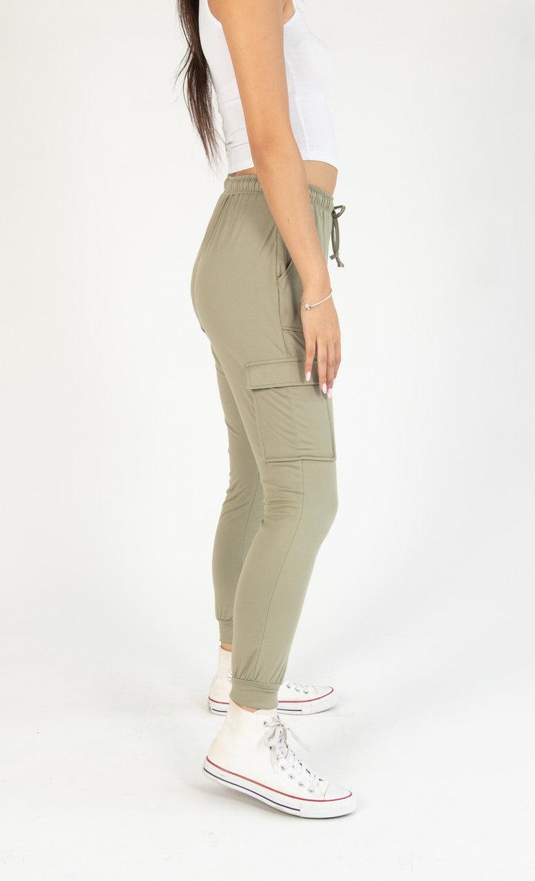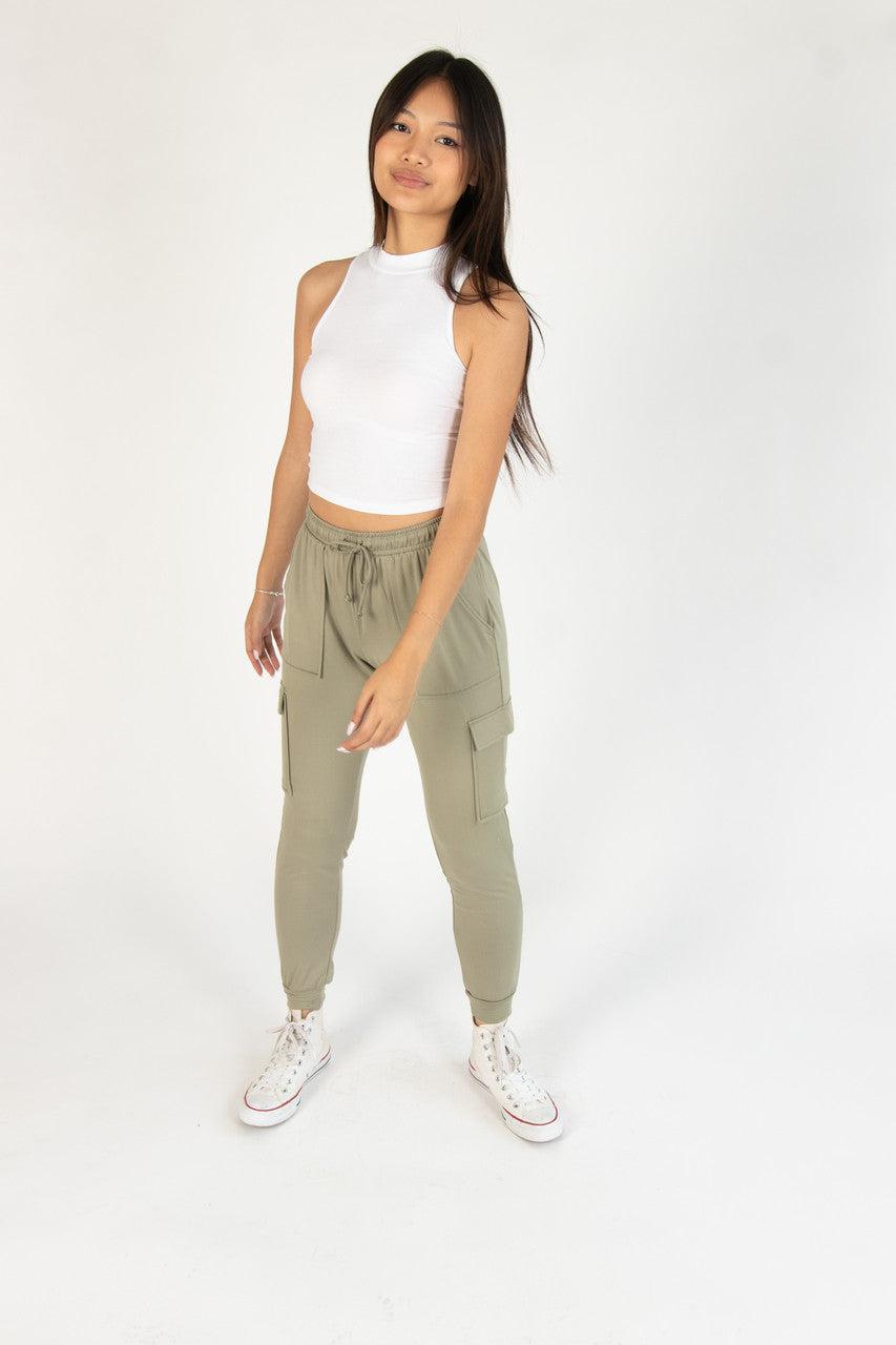 Women's Cargo Joggers with Side Pockets - A New Day™ Green XL: High Rise, Relaxed Fit, Drawstring Waistband, Ribbed Cuff