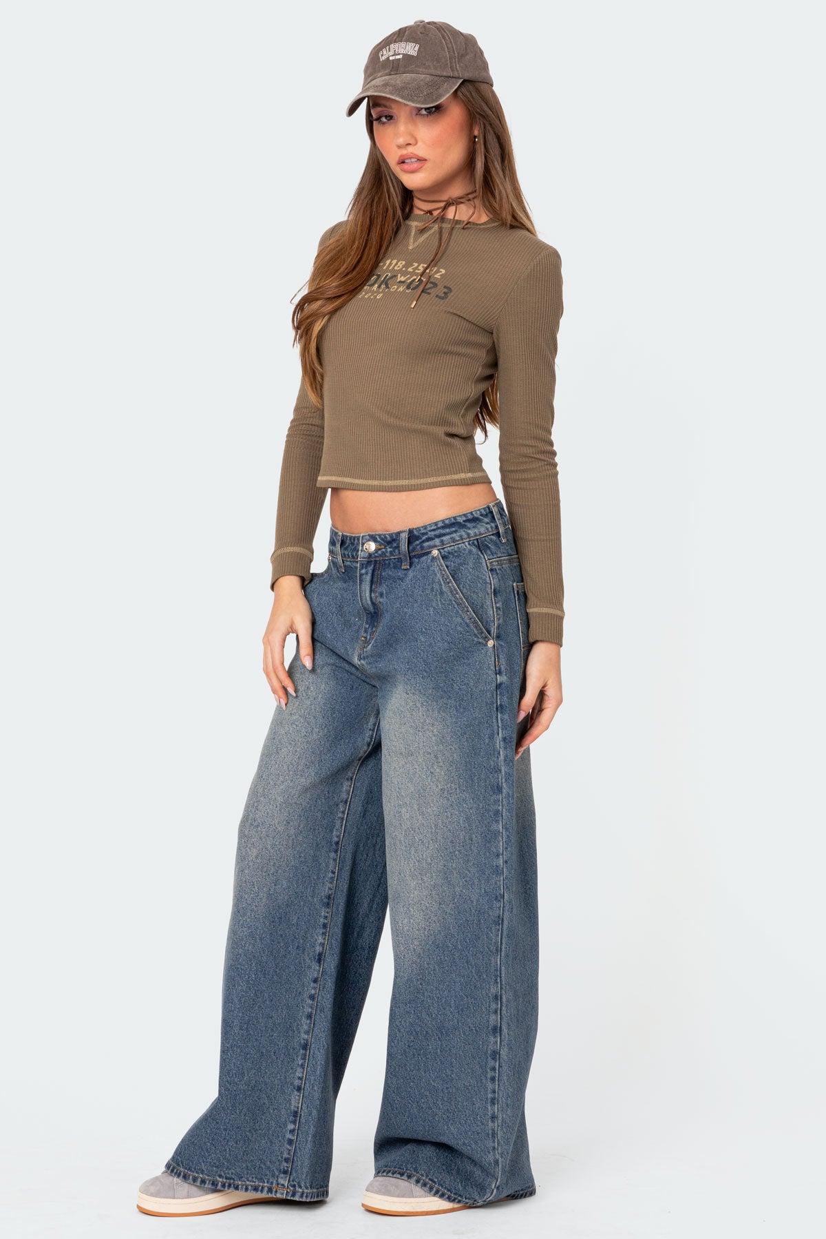 T shirt Long sleeves Graphic print Ribbed fabric Cotton, Polyester, Spandex Model wears size S Model height is 5'8 Item care: Wash with similar color