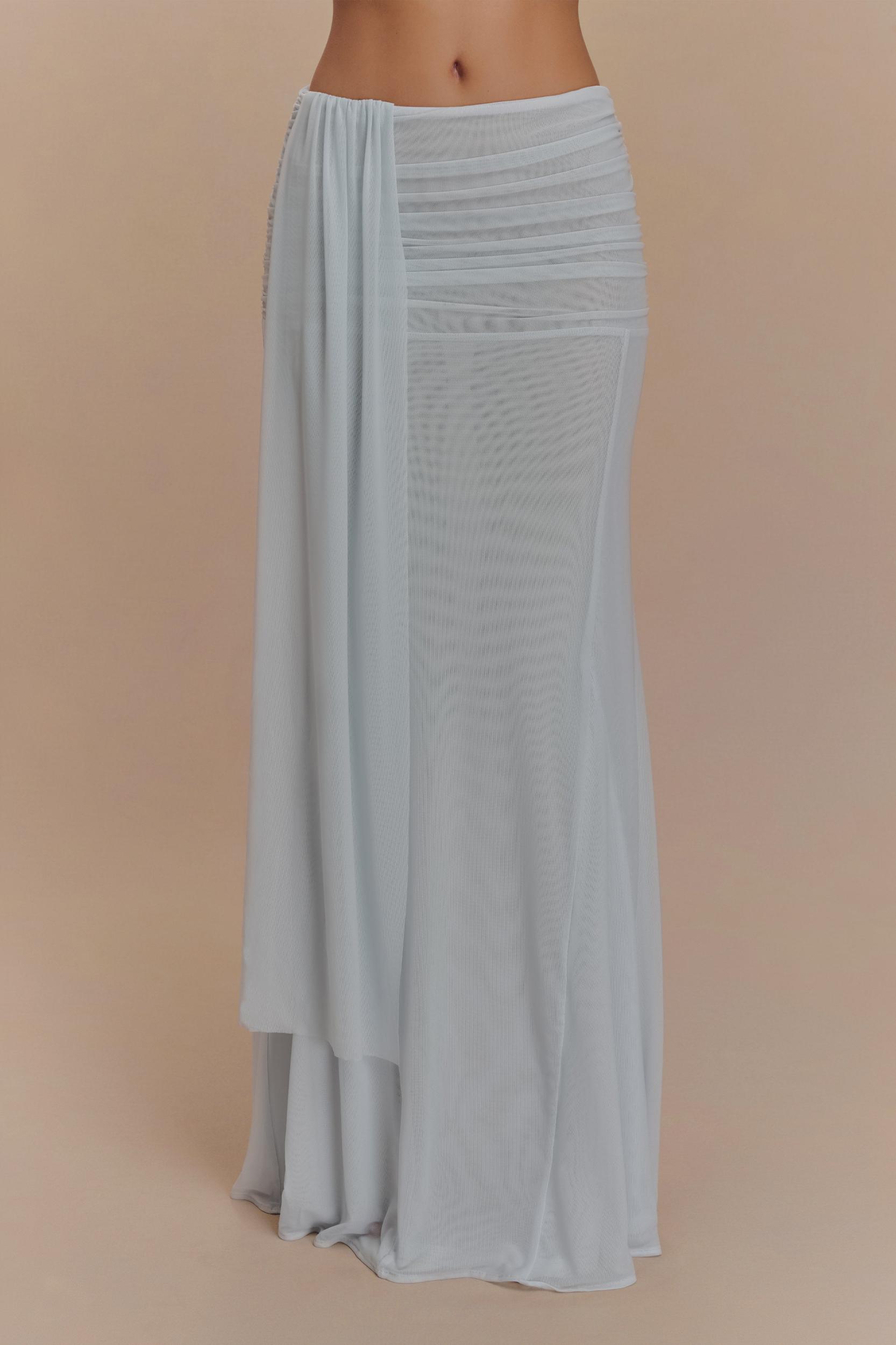 Flowing sophistication. Introducing the ARNA Mesh Maxi Skirt, a perfect blend of elegance and ease. Designed with a flattering mid-rise waist and a timeless A-line silhouette, this skirt drapes beautifully for a graceful look. The discreet side zip ensures a seamless finish, while the mini-length lining provides coverage beneath the lightweight mesh overlay, creating a soft, layered effect. Perfect for day or night, this skirt pairs effortlessly with the Brooklyn Mesh Crop Top.