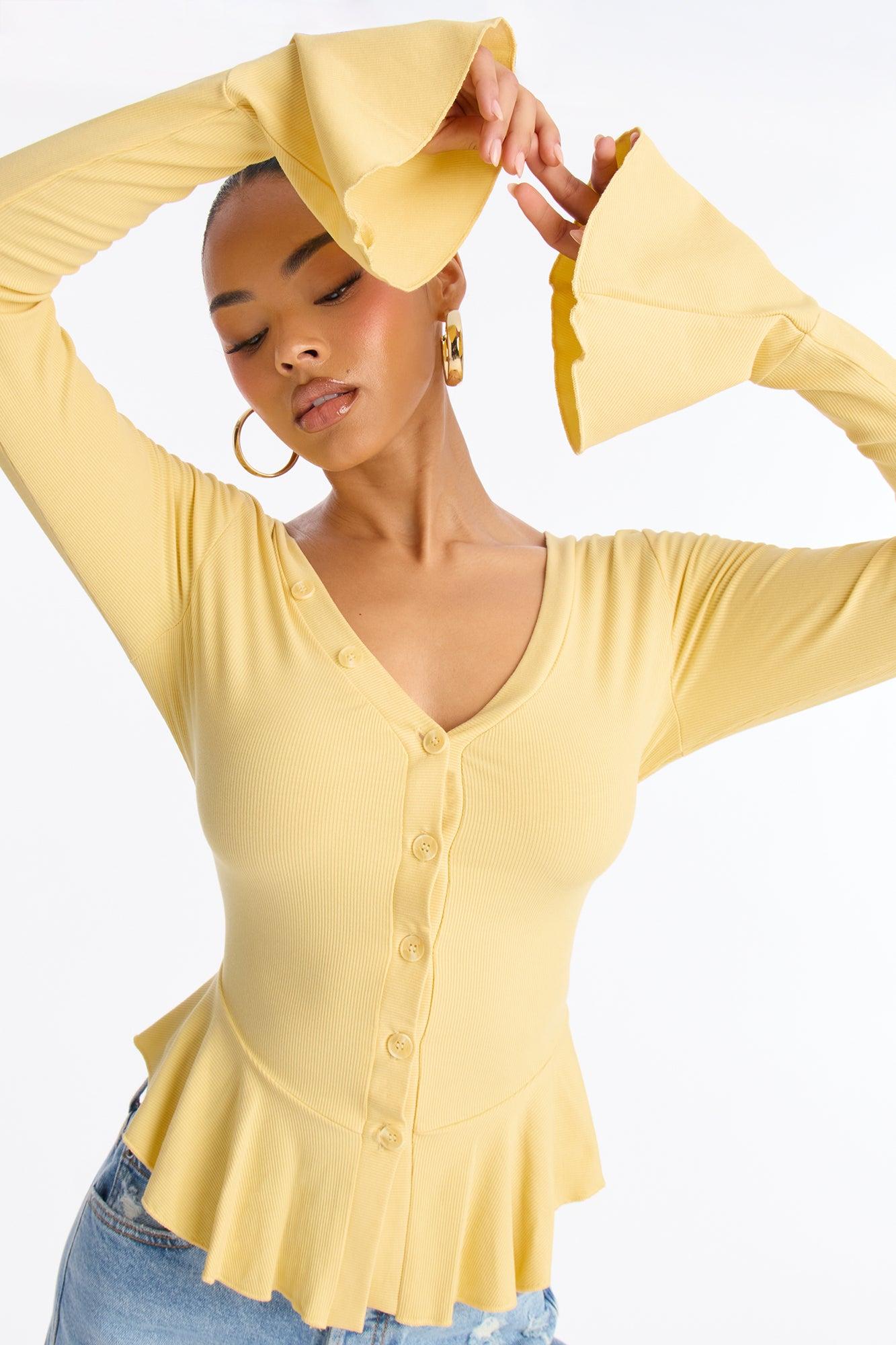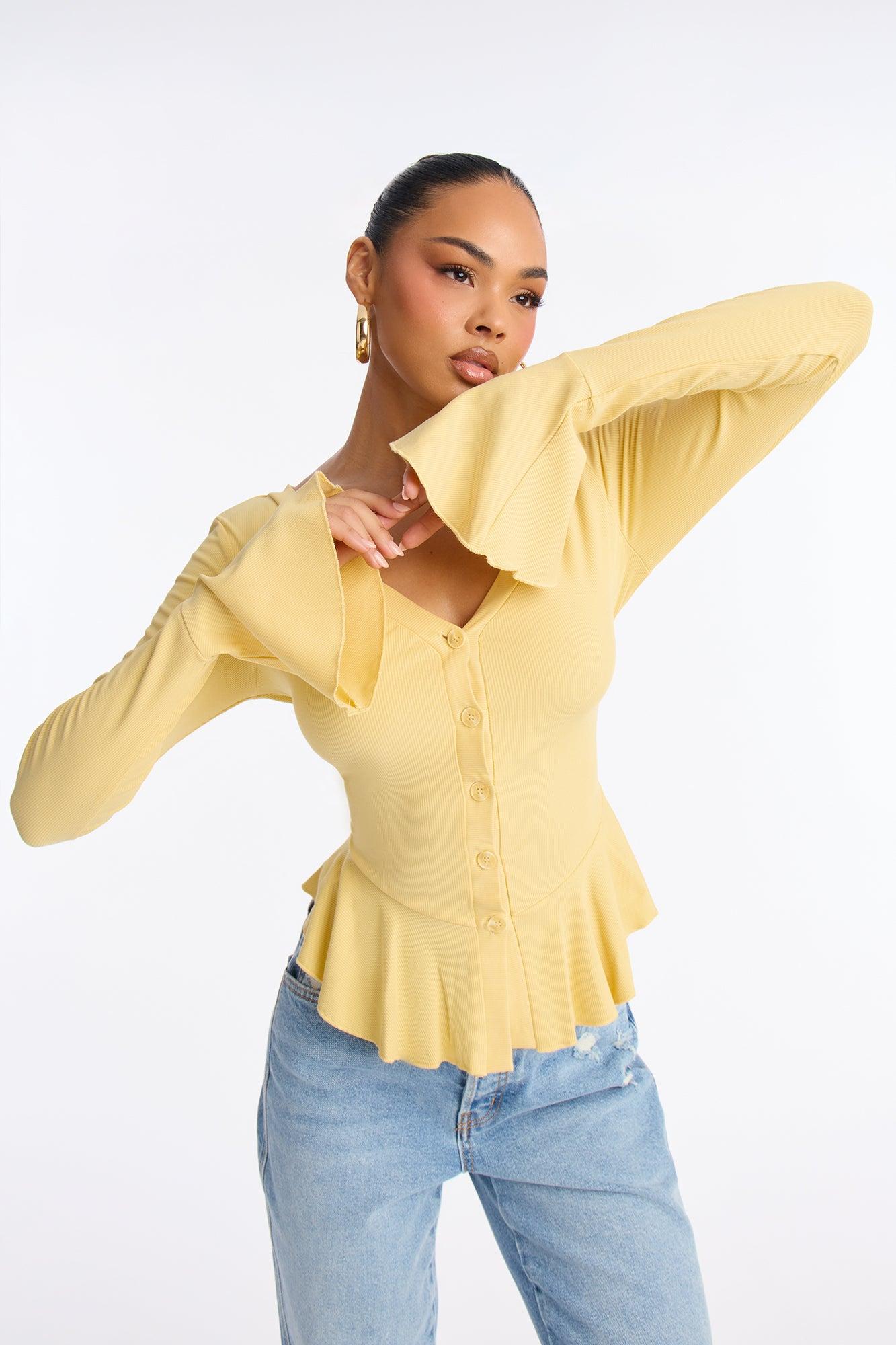 Arrow Long Sleeve Button Up Top - Butter Yellow Female
