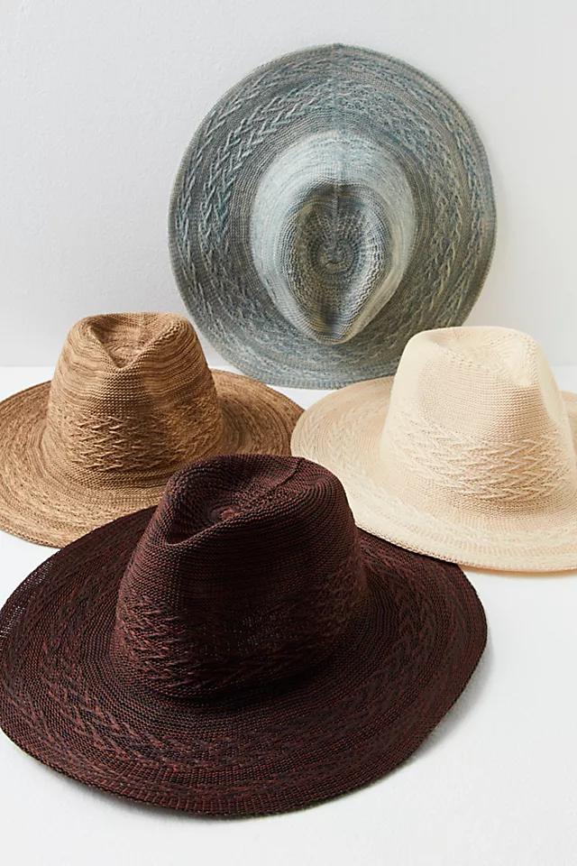 **Features:** Structured style, packable design, woven fabrication, dipped crown, wide brim