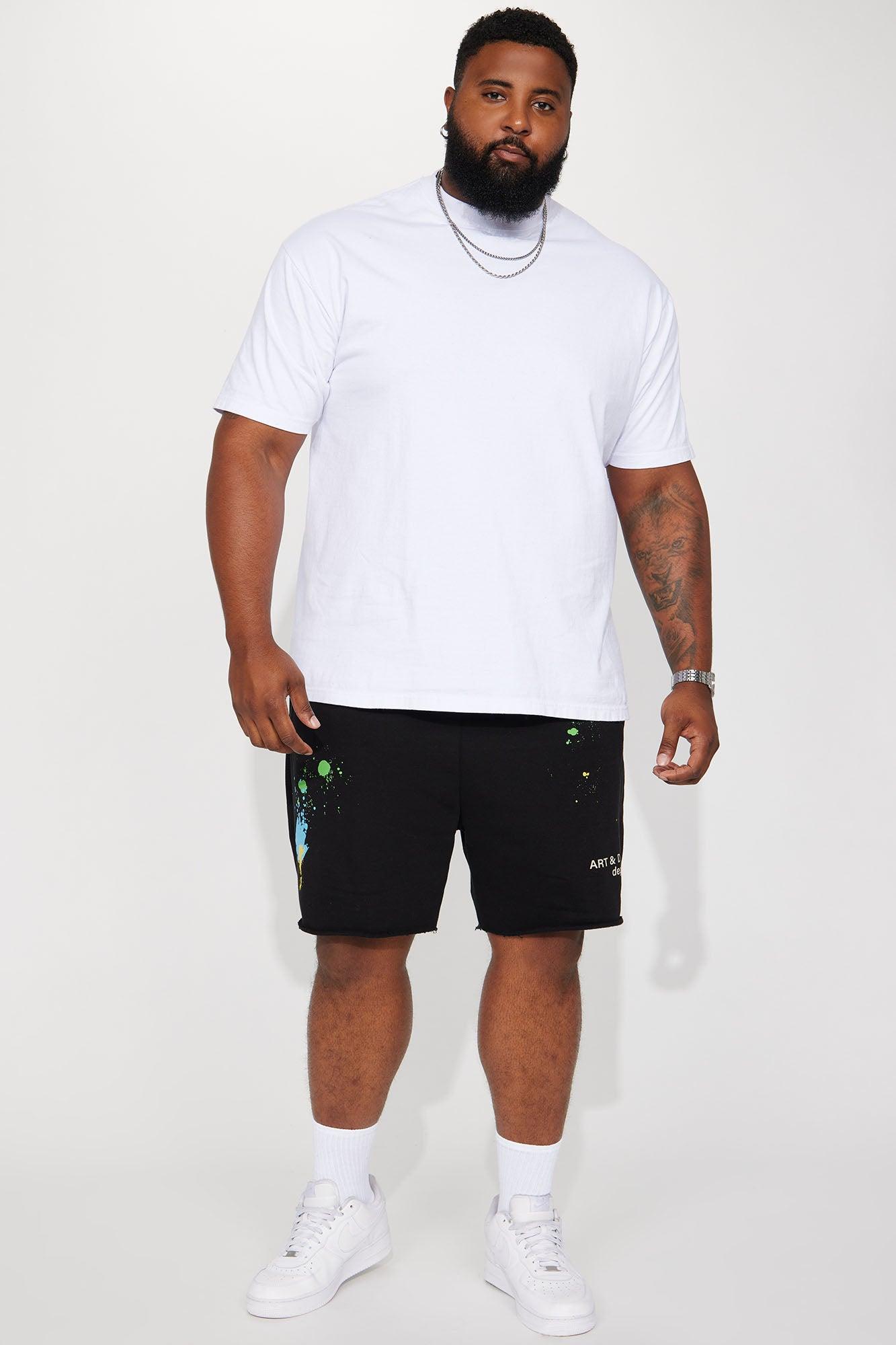 Model Height: 6'4 - Waist Size: 34 - Wearing Large Big & Tall: Height 6'5 - Waist Size: 42 - Wearing XXXL Available In Black. Elastic Waistband Drawstring Side Pockets Pair With "Art And Design Dept Short Sleeve Tee" Disclaimer: Due To The Paint Splattered & Print Placement, Each Garment Is Unique. 55% Cotton 45% Polyester Imported