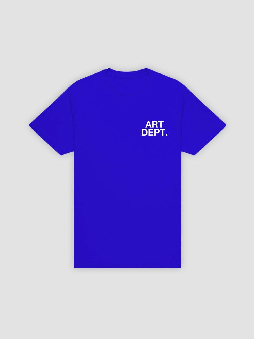 Description Size & Fit Content & Care Our Art Department Tee in Royal Blue features a small graphic on the front and large graphic across the back. Tee is short sleeve, cut to a standard fit, and is topped with a rib-knit crew neck. True to size. 100% Cotton. Machine wash cold with like colors.